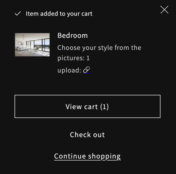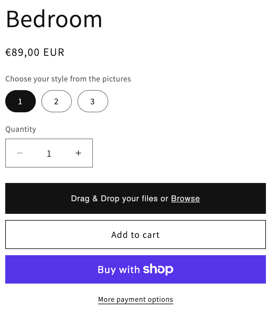 You can choose from different styles for each room. Click on a style number to preview the design, then drag and drop your files or browse to upload them. Finally, add the product to your cart.
